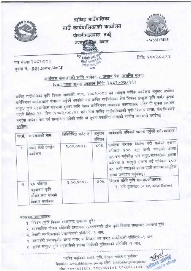 २०८२ कार्तिक १६ कार्यक्रम संचालनको लागि आवेदन/प्रस्ताव पेश सम्बन्धी सूचना