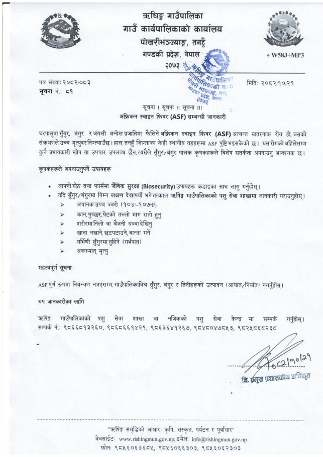 » अफ्रिकन स्वाइन फिवर (ASF) सम्बन्धी जानकारी !