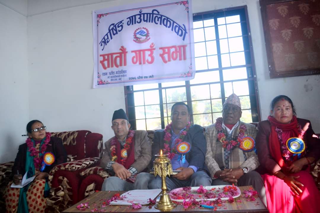 ऋषिङ्ग गाउँपालिकाको सातौँ गाउँसभा सम्पन्न ः ऋषिङ्ग , २८ पौष तनहुँ जील्लामा उवस्थित ऋषिङ्ग गाउँपालिकाको सातौँ गाउँसभा सम्पन्न भएको छ । ऋषिङ्ग गाउँपालिकाको सभाहलमा आयोजित सभामा गाउँपालिकाको गत असारमा सम्पन्न भएको पाचौं गाउँसभाबाट पारित निति ,योजना तथा कार्यक्रमहरुको संसोधन गरिएको छ । गाउँपालिकाले गत असारमा सम्पन्न पाचौं गाउँसभा मार्फत आर्थिक वर्ष २०७६÷०७७ का लागि कुल ५० करोड २० लाख ५२ हजारको बजेट प्रस्तुत गरिएको थियो । सातौं गाउँसभा मार्फत करिब ५१ लाख ६० हजार कुल बजेटमा थप गरिएको छ । गाउँसभामा बोल्दै गण्डकी प्रदेश सभा सदस्य दोबाटे बि.कले भौतिक पुर्वाधार विकास सगै जनताको आय स्तर बृद्वी गराउने उत्पादनमुखी विकासमा पनि ध्यान दिनुपर्नेमा जोड दिए । उनले ऋषिङ्ग गाउँपालिकामा भएका विकास निमार्णकार्यको प्रंशसा गर्दै सातौ गाउँसभाको सफलताको कामना गरे । जिल्ला समन्वय समिति तनहुँका प्रमुख शान्तिरमण वाग्लेले कृषि र पर्यटन मार्फत ऋषिङ्गलाई सम्बृद्ध बनाउन सकिने भन्दै यहाँका योजनाहरु अब कृषि र पर्यटन केन्द्रित हुनु पर्ने बताए । जिल्ला समन्वय समिति तनहुँका उप प्रमुख पवित्रा पौडेलले अमुन्नत विकासका लागि महिला शसक्तिकरण र युवा रोजगार अनिवार्य रहेको बताइन । कार्यक्रममा जिल्ला समन्वय समिति तनहुँका सदस्य निल बहादुर थापा । नेपाली कागे्रस तनहुँका सदस्य मोहन गिरी , नेपाली कागे्रस ऋषिङ्गका सभापती राम नाथ काफ्ले , नेकपा ऋषिङ्गका सचिब विर बहादुर थापा, नेपाल रेडक्रस सोसाइटी ऋषिङ्ग कोटदरबार उपशाखा सभापति इन्द्र बहादुर आले लगाएतले शुभकामना मन्तव्य दिए । कार्यक्रममा ऋषिङ्ग गाउँपालिका उपाध्यक्ष गिनुमाया थापाले गाउँपालिकाको आर्थिक तथा विकास प्रतिवेदन प्रस्तुत गर्नुभयो । ऋषिङ्ग गाउँपालिकाका अध्यक्ष राजेन्द्र कृष्ण श्रेष्ठको अध्यक्षताका सम्पन्न उक्त सभामा स्वागत ऋषिङ्ग गाउँपालिका वडा नं. ७ का वडा अध्यक्ष जङ्गंविर आले र संचालन गाउँपालिकाका सुचना प्रविधि अधिकृत मधु अधिकारीले गरेका थिए ।