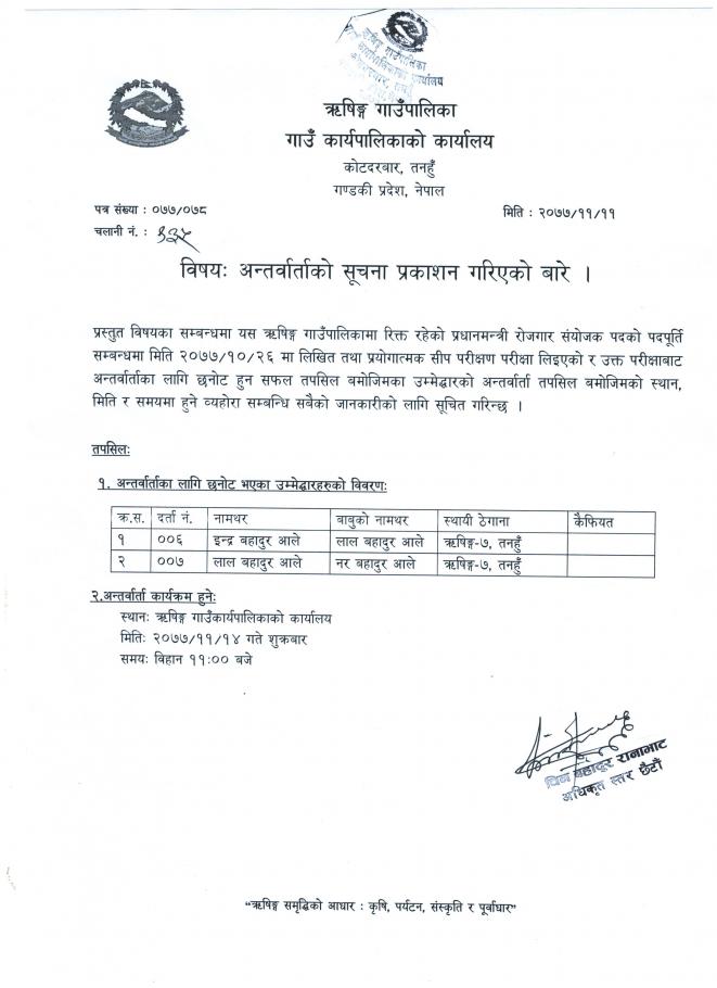 राेजगार संयाेजकका लागि अन्तरवार्ताकाे सुचना प्रकाशन गरेकाे बारे