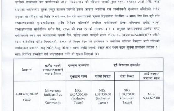 सिलबन्दी दरभाउपत्र स्वीकृत गर्ने सम्बन्धी आशयको सूचना !!