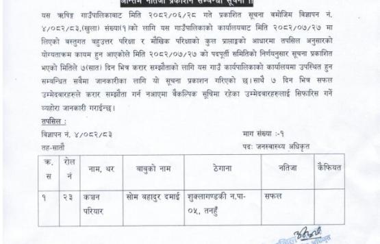 अन्तिम नतिजा प्रकाशन सम्बन्धी सूचना !! (पदः जनस्वास्थ्य अधिकृत)