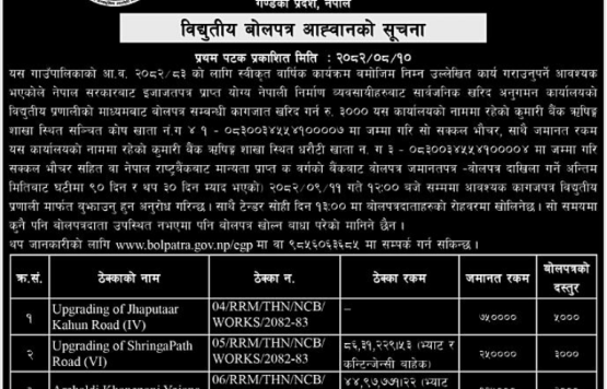 विद्युतीय बोलपत्र आह्वानको सूचना !!!